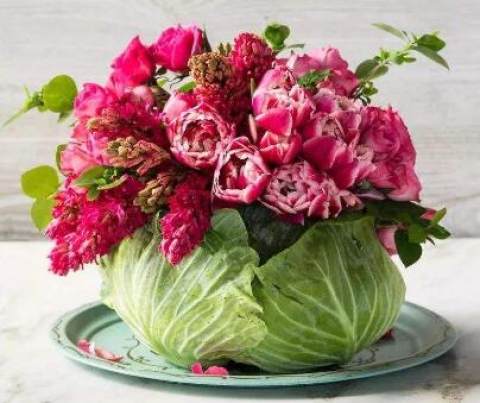 Kitchen is a place to create delicious food. It's more interesting to add suitable vegetables or fruits as flowers. Tomatoes, carrots, ginger and onions are all good materials for flower arrangement.